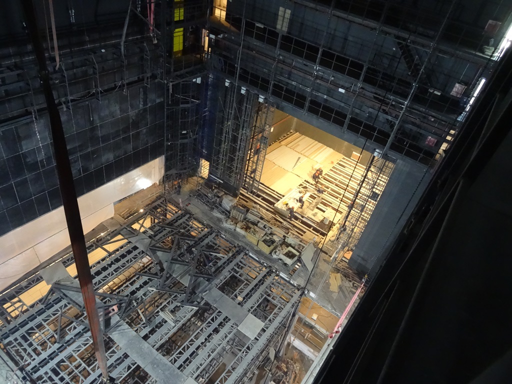 View from the gallery to the stage podiums | © SBS Bühnentechnik
