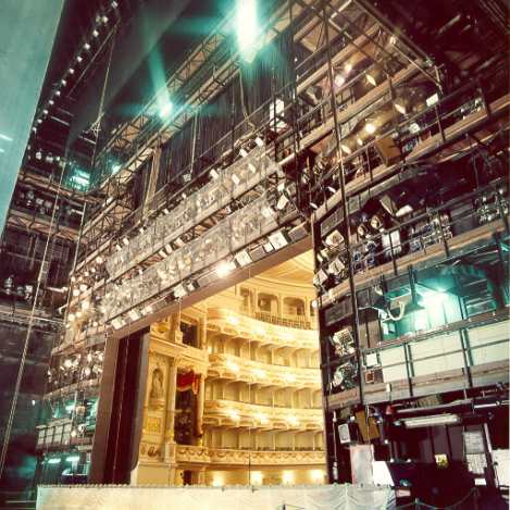 Dresden’s Semper Opera House was officially reopened on 13 February 1985, exactly 40 years to the day after its destruction. While the façade, foyer and auditorium were carefully rebuilt following the historical model of 1841, the main stage was greatly enlarged by the addition of two side stages. During the summer breaks of 1998-2000, SBS extensively overhauled the drives and control systems of all stage machinery.